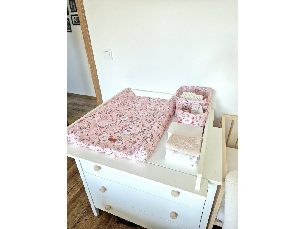 Košík bude zároveň krásným doplňkem na přebalovacím pultu či poličce v dětském pokoji.